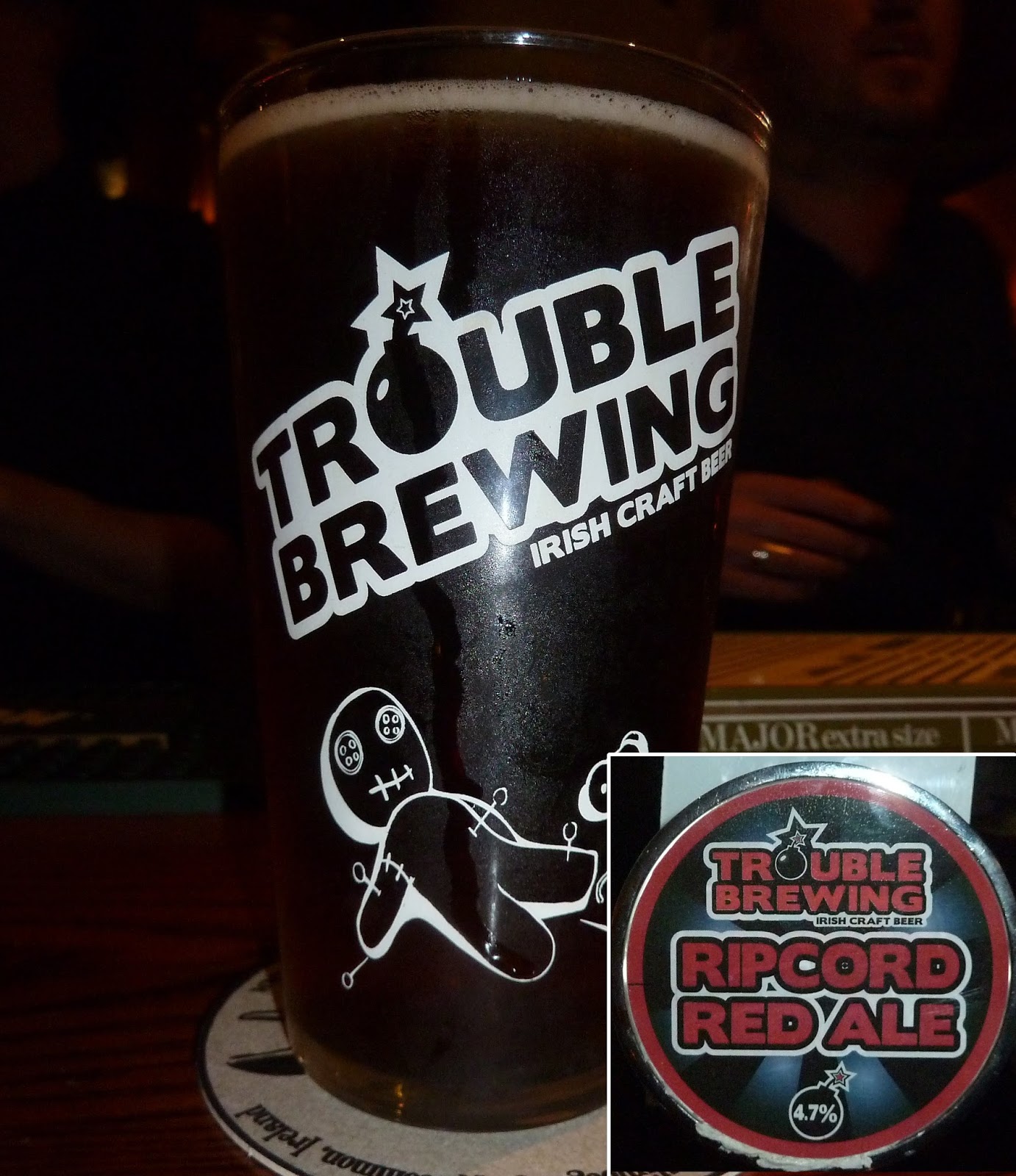 And on the tap around the corner, a new one from Trouble: Ripcord red ale. It being Trouble I wasn't expecting a standard Irish red, but that's pretty much what this is, unfortunately. In the absence of bolder flavours a nasty yeasty bite opened it up and just sat on the watery texture refusing to move. As it warmed there was some lighter red fruit added but nothing to make the beer interesting. The spec says there's supposed to be a US twist here, Cascade and Centennial, but it completely passed me by.I'll have to award this round to the bottled beers, but draught will be making a comeback when I get to writing about what I found at this year's Irish Craft Beer Festival last weekend. Coming soon. Ish.