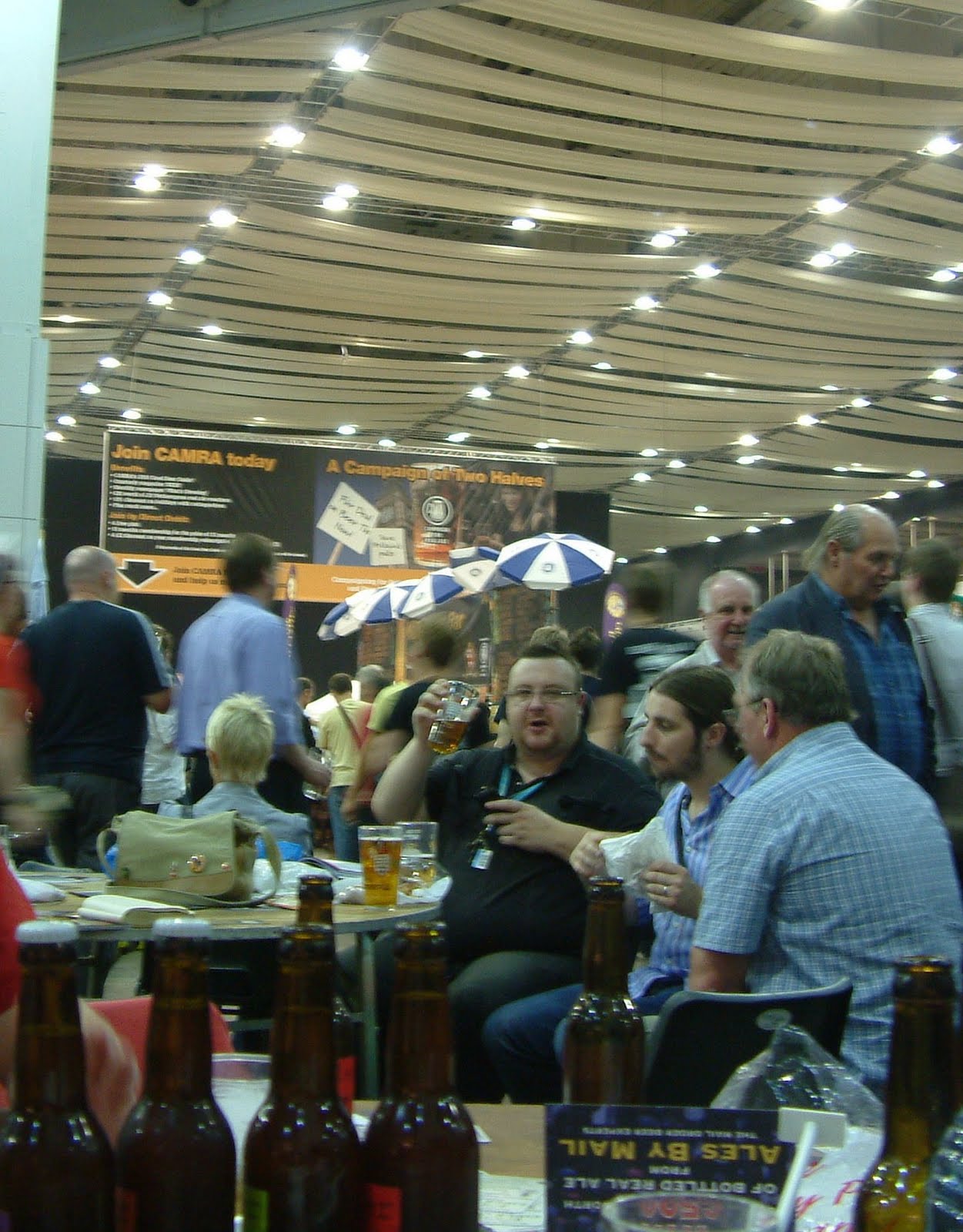 Every year the Bières Sans Frontières bar at the Great British Beer Festival seems to become more and more integrated into the main part of the festival. Last year saw the end of its own separate website, and this year there was no separately published programme: the beers being listed in the main CAMRA booklet for the whole event. A sign that CAMRA is taking more seriously the role that foreign beer plays in bringing drinkers to the festival; or just a way of making sure the corporate brand is appropriately applied to one of the Campaign's outlying vassals? I don't know. It doesn't matter. What matters is that, once again at the GBBF, there was a fantastic array of cask, keg and bottled beers from all over. The US is generally the centrepiece of this (for the serious beer geeks at least) and this post is about what came over from Stateside.Memories of 2008 and the amazing Lost Abbey Angel's Share I had from BSF that day meant I had no qualms about going straight for another of their thumping barley wines as soon as the doors opened. This year it was the 2009 edition of Older Viscosity: 12.5% ABV and matured in bourbon barrels; dark dark amber and pancake flat; silky smooth and brimming with rich sherry aromas, tasting of cherries, chocolate and vanilla in equal proportions. Just my kind of beer, though not everyone around the table was into it. I blame the ridiculous received notion that beers over 12% ABV should only be consumed after 1pm. Pah!