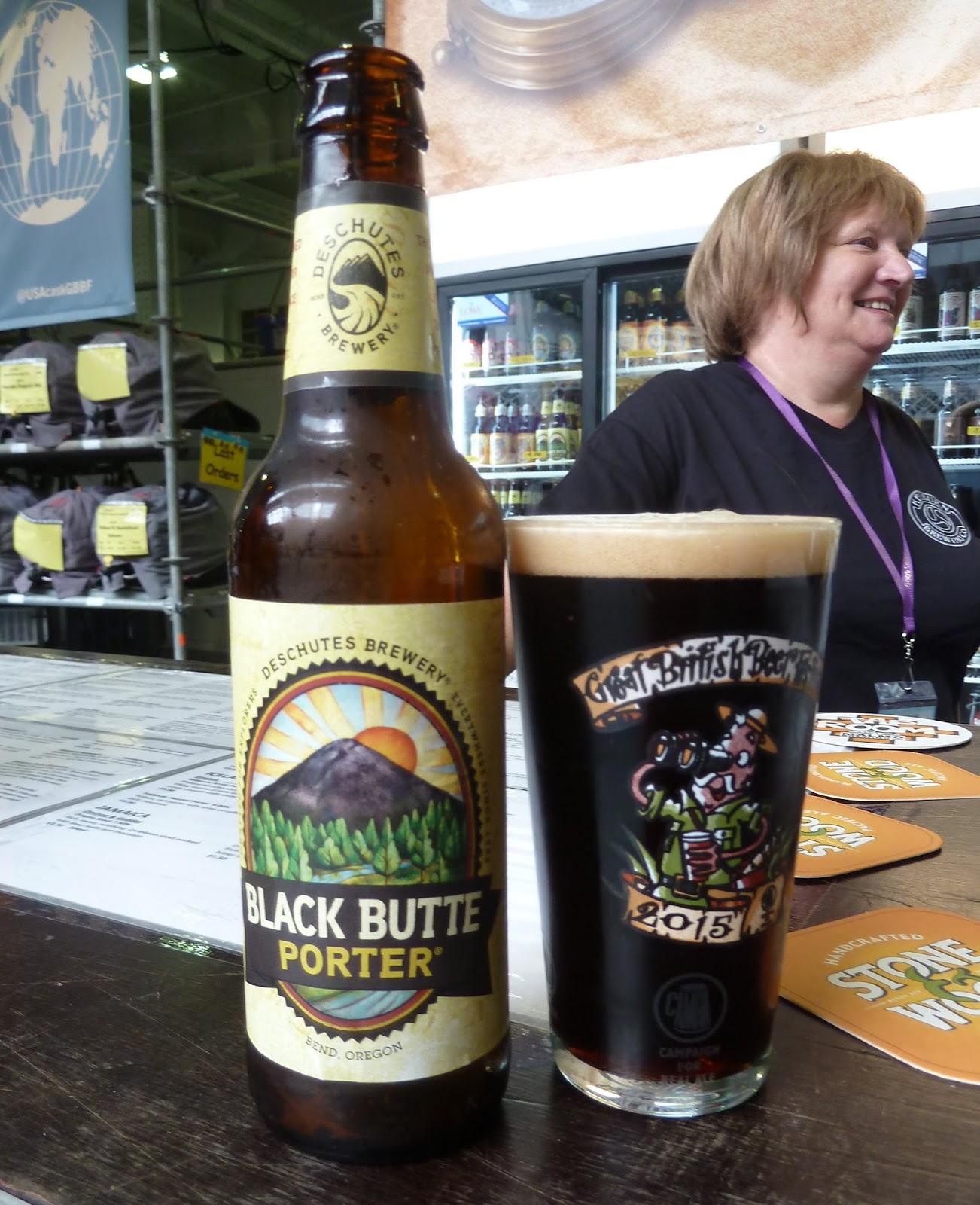 One of the few beers on my must-drink hitlist for the day was Black Butte from Oregon's Deschutes. It's 5.2% ABV and an opaque black, showing just brownish at the edges. The flavour is pretty straightforward, I was a little surprised to find: mostly chocolate, though also some subtle spices and flowers, particularly as it warms. It's enjoyable drinking but I think for some reason I was expecting something more special. But that's my fault, not the beer's.