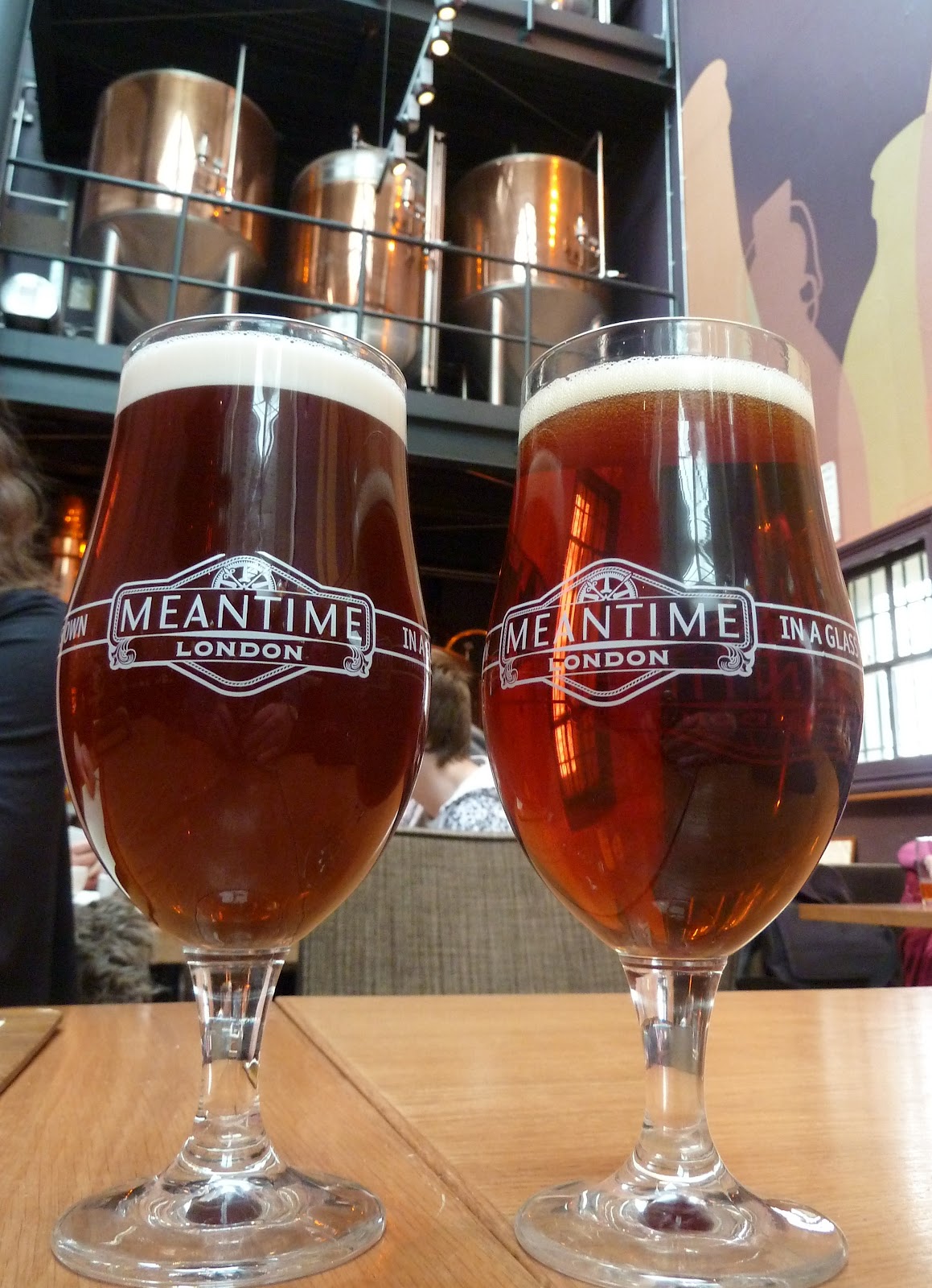 We stayed in the east for the third and final brewery of the day, taking the Docklands Light Railway down to Greenwich to visit Meantime's new facility The Old Brewery. This place really acts as the cafeteria of the Naval College Museum, with all the atmosphere and charm of modern museum catering facilities everywhere. It's brightly lit, brightly decorated and has a continuous flow of patrons in and out between the adjoining museum. I sat opposite the gleaming three-tier brewkit, and even