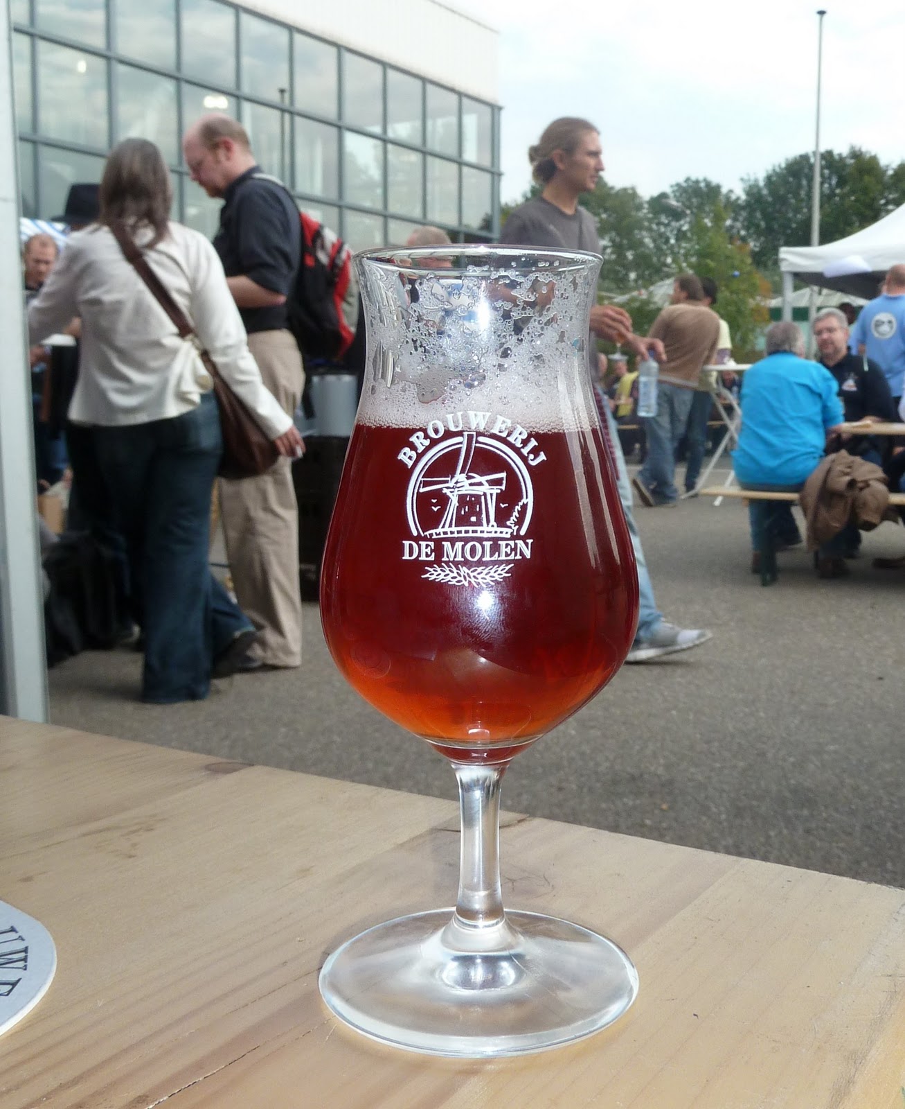 Our tour of the breweries at the Borefts beer festival this year brings us to Denmark next. Well, sort of. Mikkeller is still brewing in all corners of Europe and beyond, and there was certainly no lack of diversity in the beers they presented. They even had comedy legend Chris Morris helping out at the stand.I went for a couple of the sour ones first, attracted in particular to Rhubarb Lambic 2010. Though I'm not big into rhubarb generally, I have known it to work really well in beer. This cloudy pale yellow beer doesn't have much by way of rhubarb flavour characteristics, but is more appley, with a pungent cider aroma and apples sitting next to the normal, invigorating, lambic tartness. The texture is very interesting, with a dry bicarbonate of soda style fizz. Not a beer I'd drink lots of, but great as a palate cleanser in small quantities.