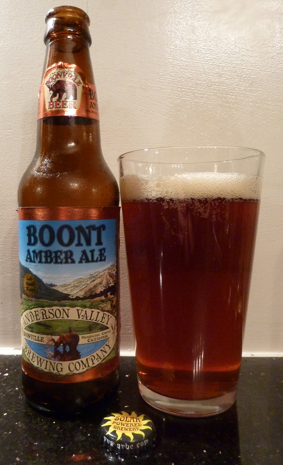 I do love a good American amber ale: gentle but assertive hop fruitiness based on a firm and biscuity malt base and a middle-of-the-road ABV, between 5 and 6%. It's the best of all possible worlds and great fun to just drink through without giving it too much thought.Anderson Valley's Boont is a relative newcomer to these parts, hailing from California as all the best amber ales do -- Speakeasy's Prohibition, for the record, is my benchmark here. It's certainly amber, a deep shade of orange, darkened further by a suspended haze: it's not amber if there aren't things trapped in it, I guess. Sherbet lemons and gingerbread on the nose, and a flavour dominated by toffee malt. The hop notes are rather muted, dialled down from bitter, below fruity, and only just hanging on as floral, though a little bit of citric tang kicks in cheekily at the end. And I wouldn't change a thing about it. At 5.8% ABV it's light enough to drink freely, but with enough weight to carry the different flavours and aromas. End-to-end tastiness.