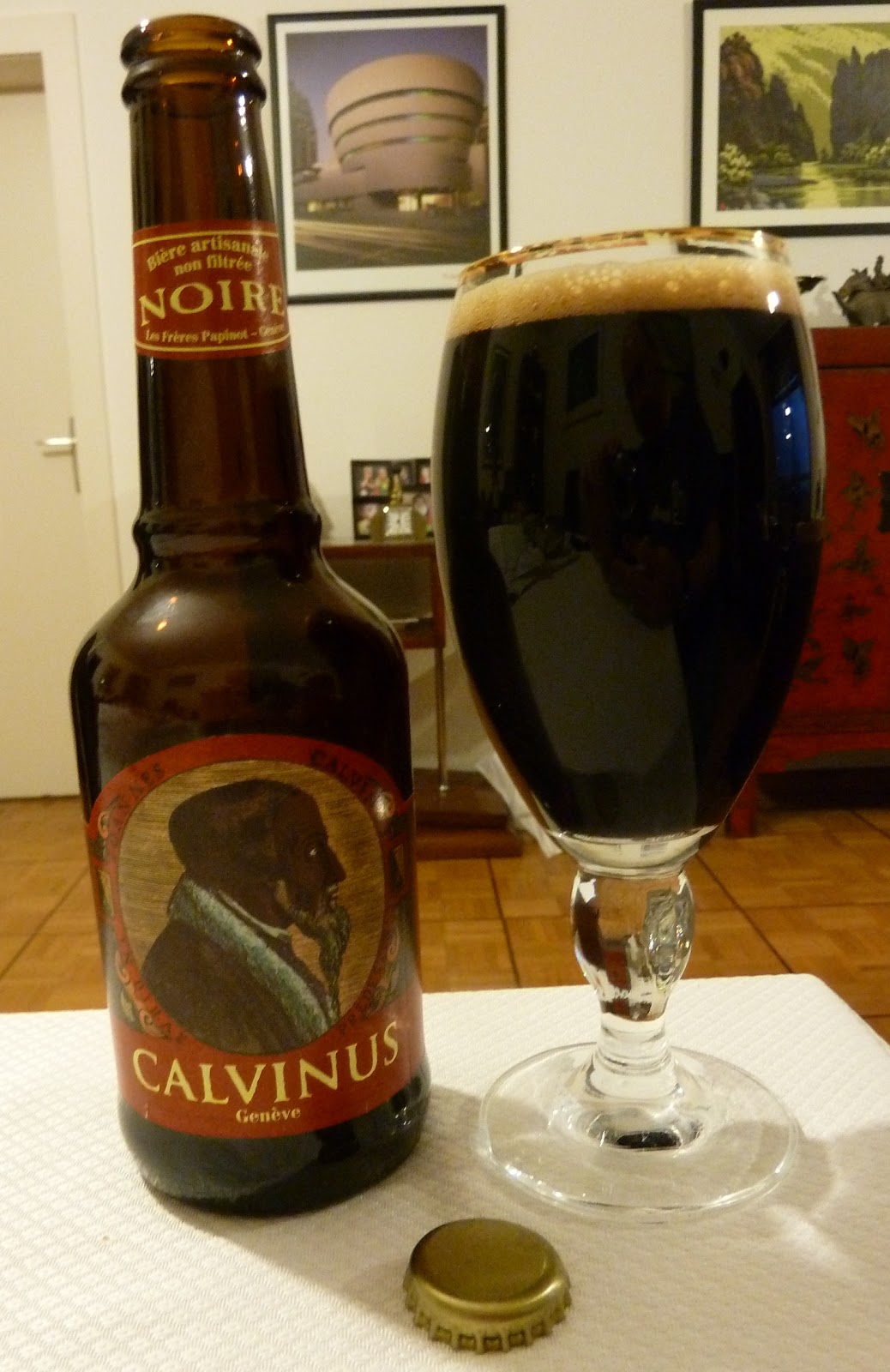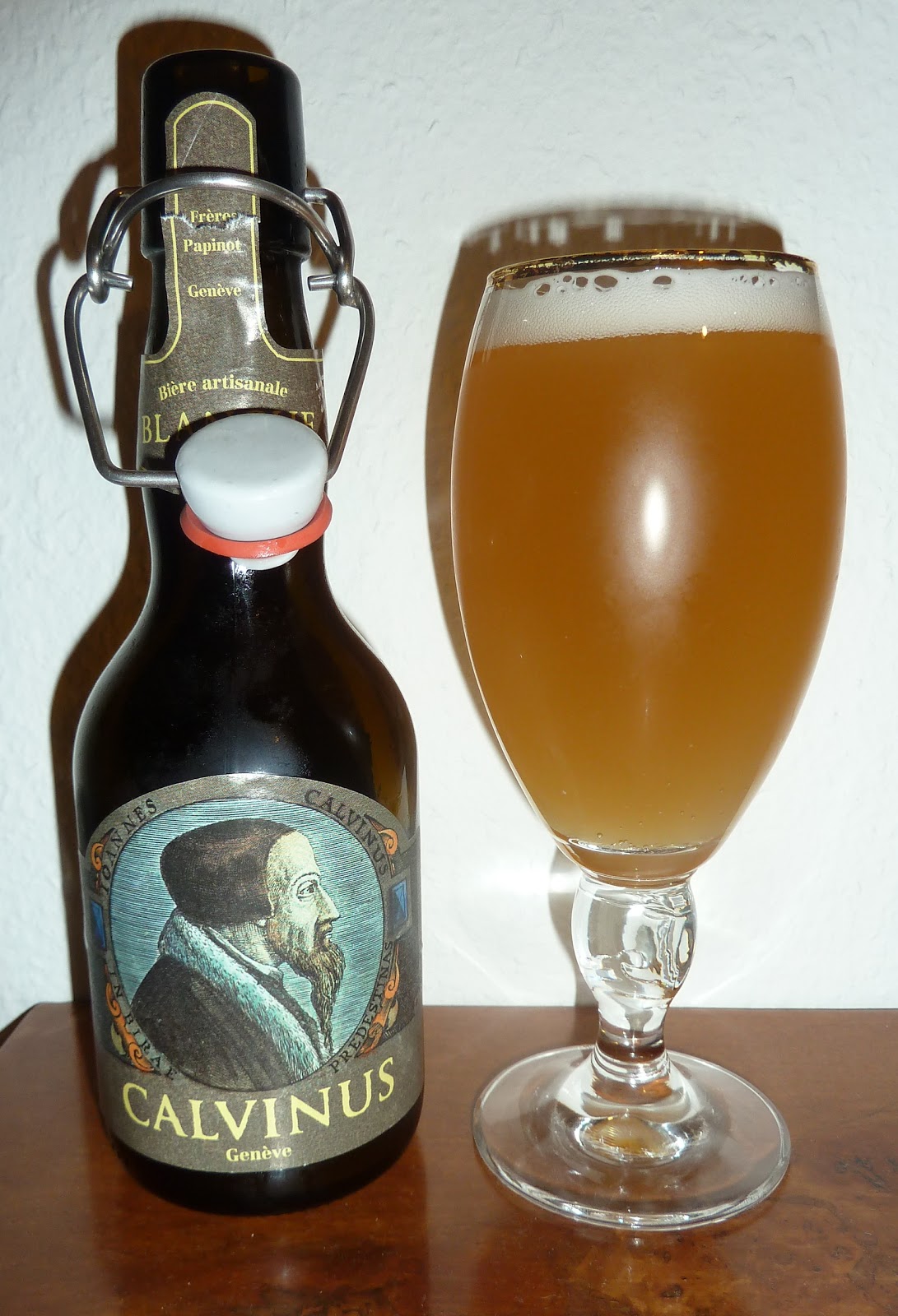 I'm all in favour of naming beers in honour of local historical celebrities, but must admit that John Calvin is an odd choice, even for Geneva-based beer company Les Frères Papinot. It shows what I know, however, as there's a detailed description of Big John's brief career as a brewer on the back of Calvinus Blanche, first in the helpfully-numbered sequence of eponymous beers. (Bov, the authority on Swiss beer, tells me these are all contract brewed in Appenzell by Locher.)