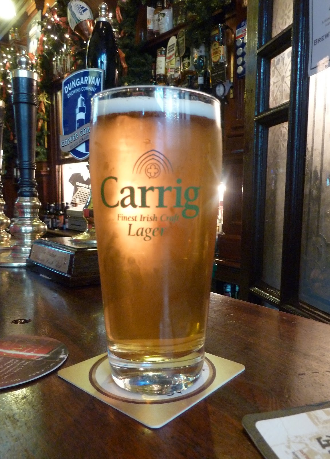 Lager is a tough sell, and even more so now that three independent Irish brands are fighting it out in the pubs against the big locally-brewed international brands and the fashionable imports. That said, all three are big on their sense of place -- Dingle for Crean's and Carrick-on-Shannon for Carrig -- and this is the only Dublin-centric one among them. Pale lager, if you will. Perhaps that will be enough to carry it.