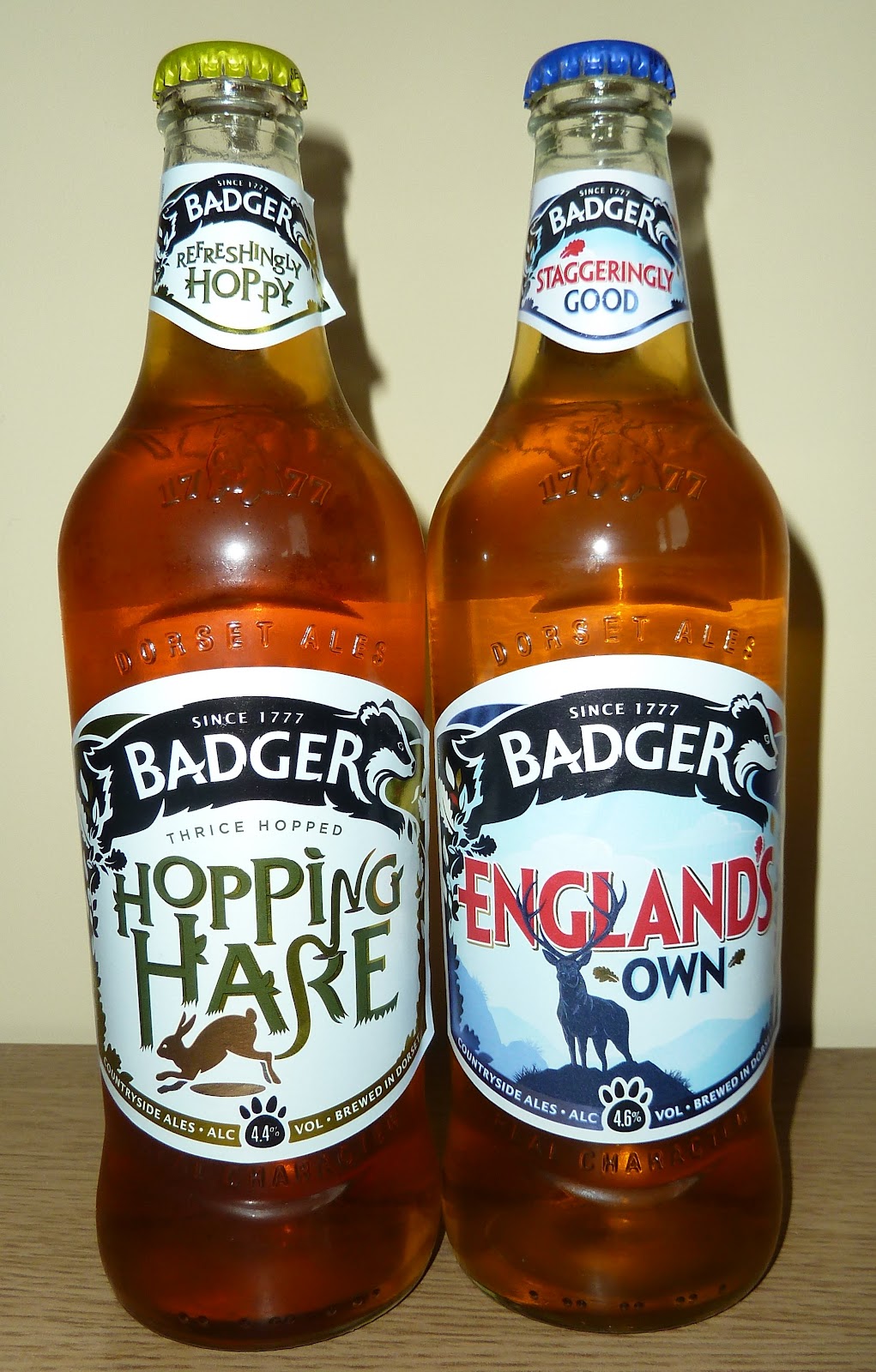I haven't bothered the Badger in a while now, and vice versa. I've not seen so many of them about of late but it was sort of inevitable that the rising flood of bottled English ales would eventually wash a couple into my hands. And here they are: exposing themselves indecently at me through their clear glass bottles. I blame the parents.